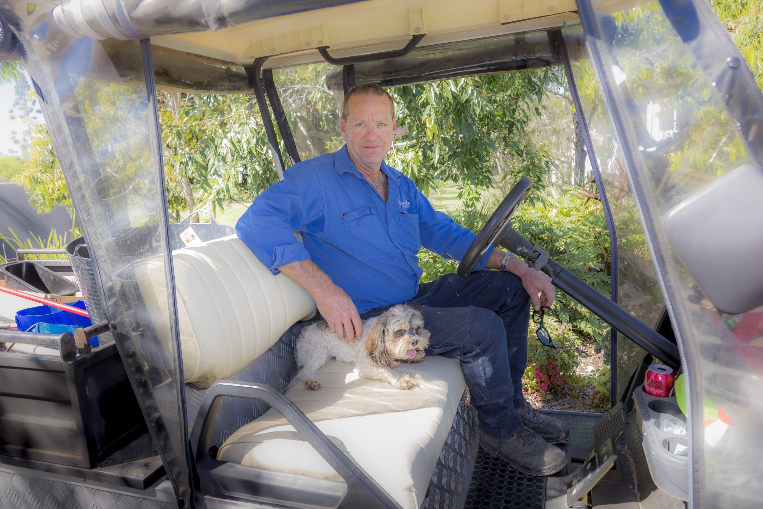 “We call Ziggy our site supervisor as a joke because he rides on the buggy – he’s everywhere. When Rodger’s working out in the park and the gardens, Ziggy’s not only company for him, but also for the residents who walk by to stop and pat him,” said Leisa.