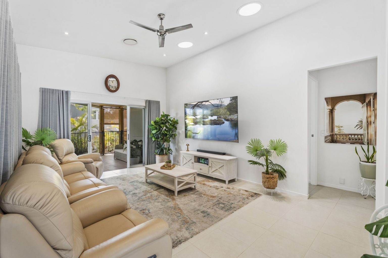 Positioned on a prime corner block opposite the Clubhouse, this expansive home offers resort-style living with soaring ceilings and a stunning modern interior. Enjoy four alfresco areas for seamless indoor-outdoor entertaining, surrounded by lush tropical gardens.