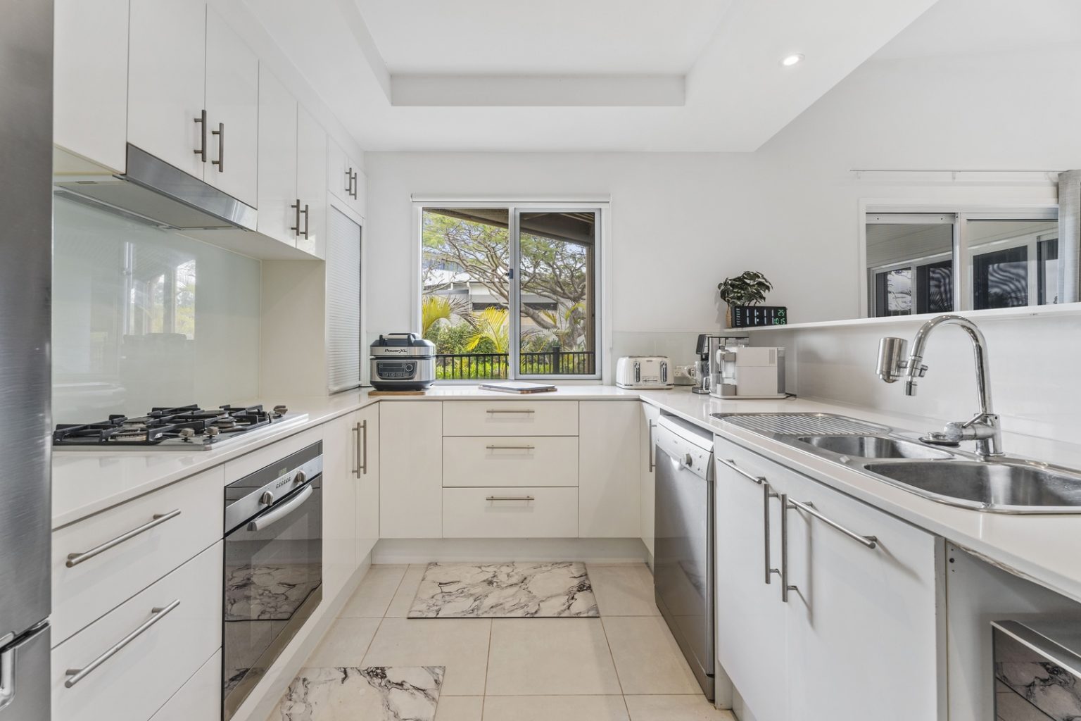 The skylit kitchen includes stone benchtops, abundant storage, and everything you need for effortless entertaining. Separate living and dining zones are complemented by ducted air conditioning and ceiling fans throughout.
