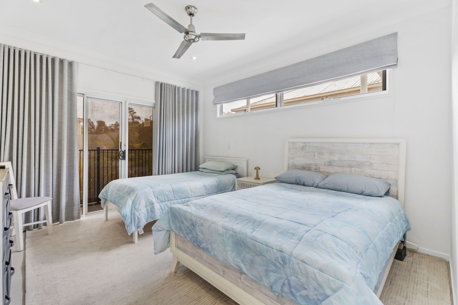 Boasting two spacious bedrooms – each with built-in robes, ensuites, and alfresco access – plus a versatile third media room, this home is designed for flexibility and comfort. The master suite features a twin vanity ensuite and walk-in robe, while both bedrooms open to separate outdoor areas with stunning tropical surrounds.