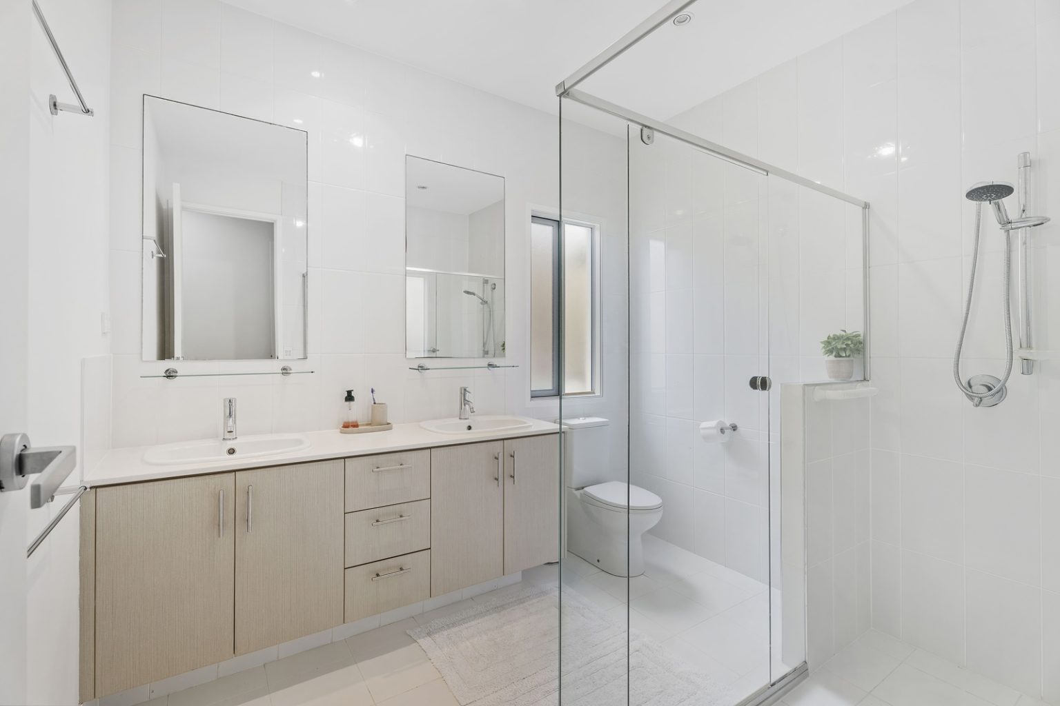 Additional features include a second bathroom, separate powder room, and a combined laundry in the double garage, alongside even more streamlined storage.